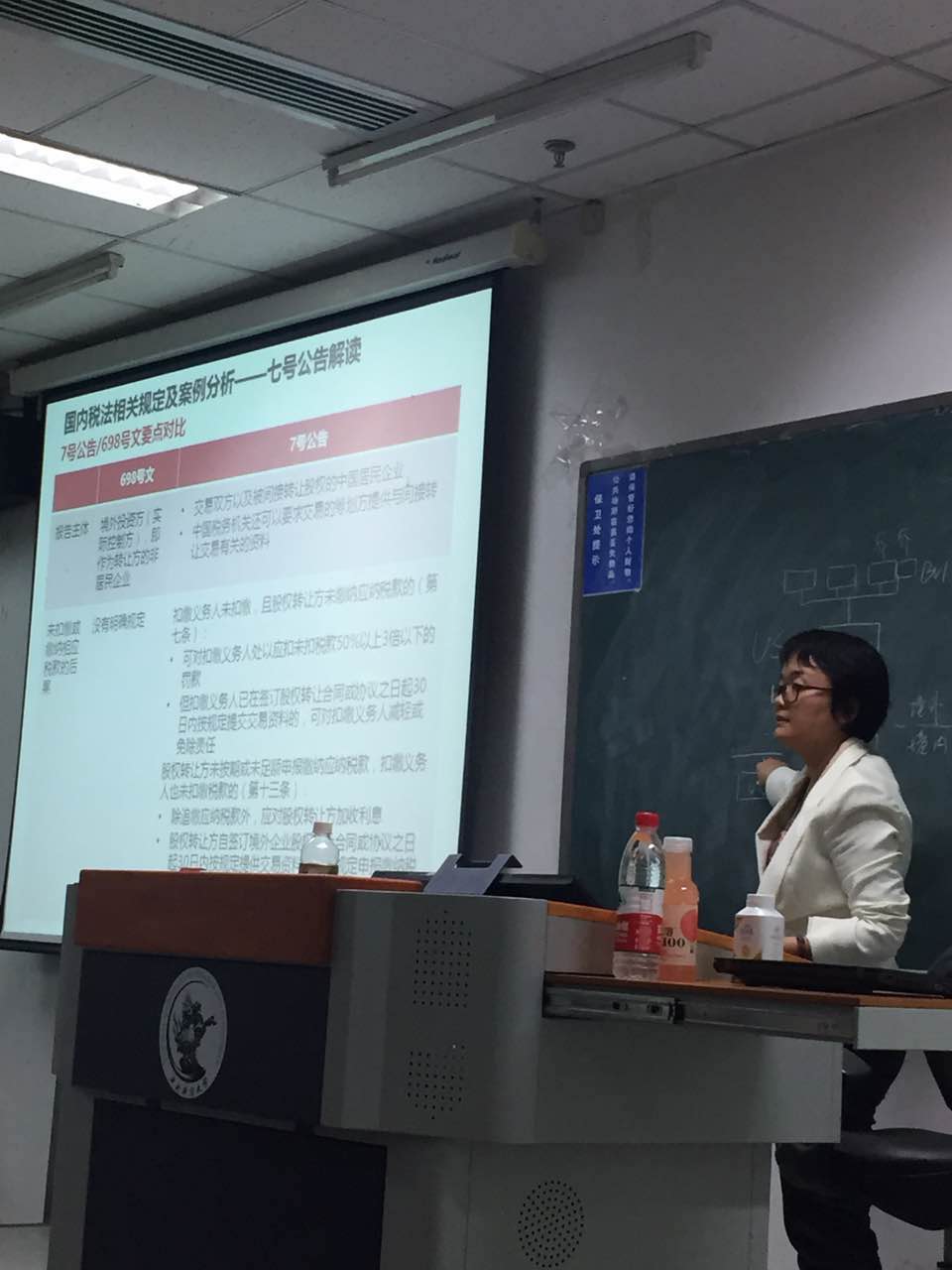 9月28日晚,在沙河校区6-106教室,球友会17级税务专业硕士案例研讨课第3期(总第13期)如期开讲。此次的主讲人为京东集团税务总监张爱华老师。张老师通过法规解读、案例讲解为同学们介绍了非居民企业间接股权转让的相关知识。刘金科老师主持并参加了此次案例研讨课,杨虹教授、黄云教授也参加了这次课程,并同张老师开展了热烈的讨论。