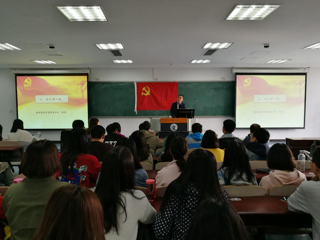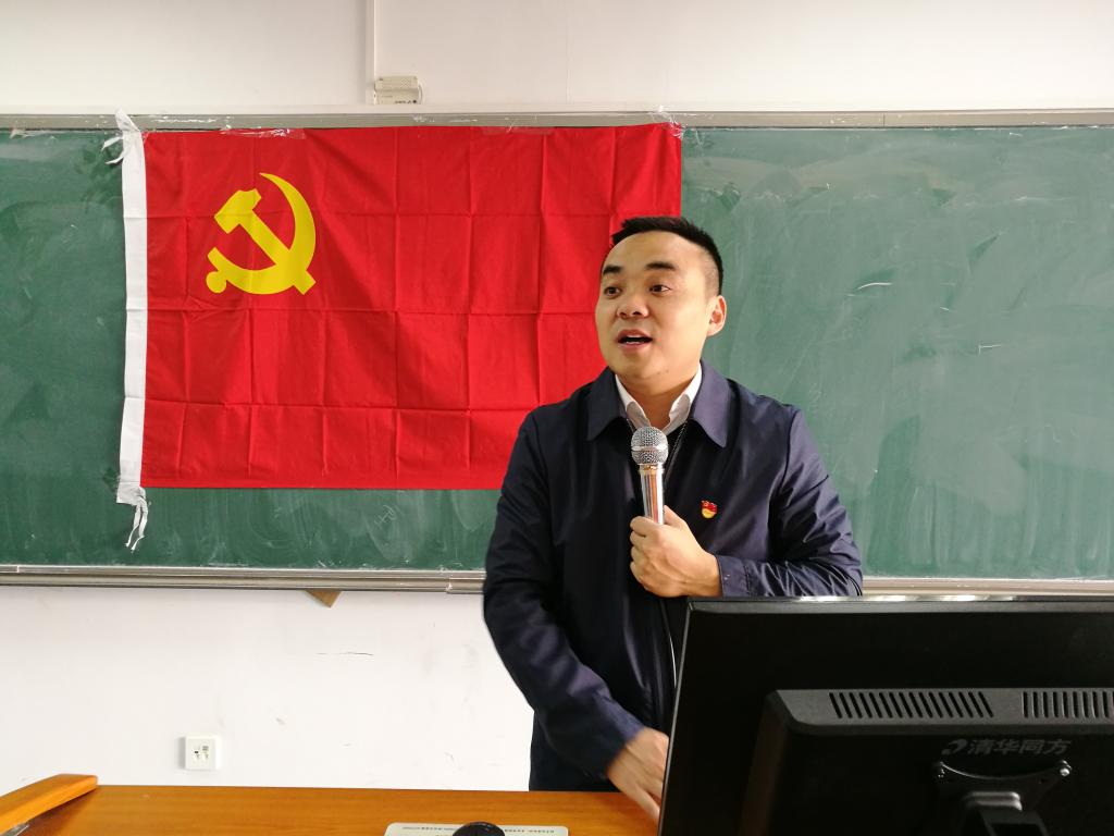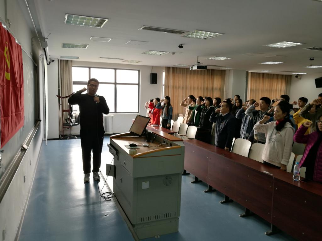 此次活动分为奏唱国歌,重温入党誓词和书记第一课三个环节。在奏唱国歌和重温入党宣誓词之后,樊勇书记为2017级全体研究生党员上了生动的一课。