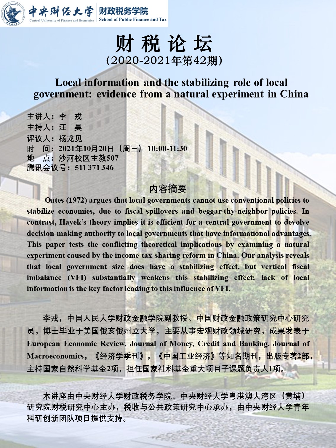 【财税论坛】Local information and the stabilizing role of local government: evidence from a natural experiment in China