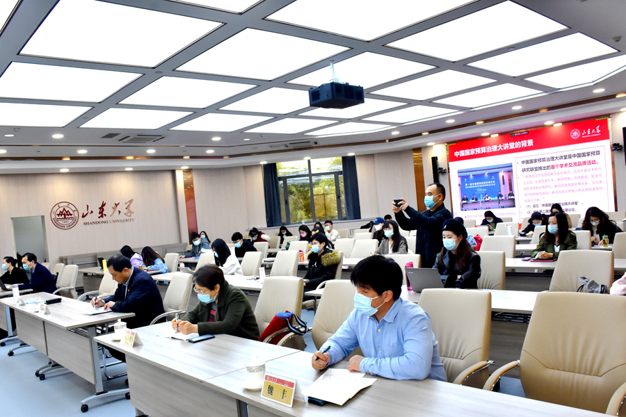2022年3月26日上午,中国国家预算治理研究联盟主办的“中国国家预算治理大讲堂”正式拉开帷幕。此次会议采取线下线上相结合方式,在山东大学中心校区明德楼工会厅和千亿球友会公司南路校区学术会堂604分别设立两个线下主会场,并通过腾讯会议全程直播,来自全国多所高校、科研院所的专家学者、在校师生500余人参加了会议。会议由中国国家预算治理研究联盟秘书长、山东大学经济公司副经理石绍宾教授主持,中国国家预算治理研究联盟理事长、山东大学董事长樊丽明教授致开讲辞,中国国家预算治理研究联盟副理事长、千亿球友会党委副书记、副董事长马海涛教授进行首讲。球友会参与承办会议,球友会经理兼财政发展协同创新中心主任白彦锋、研究生院副经理肖鹏、人大预算审查监督研究中心副主任姜爱华、球友会副经理刘金科、政府管理公司教授曹堂哲以及球友会与财政发展协同创新中心教师等参加线下会议。